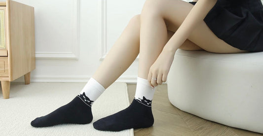 6 párov dámskych polovysokých ponožiek, čierno-biele emoji 5576