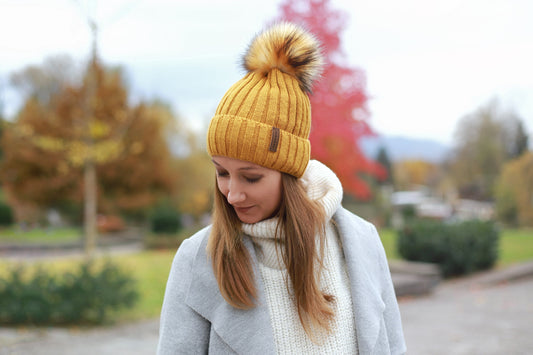 Zimná pletená čiapka Lunanay 7015, horčicovo žltá