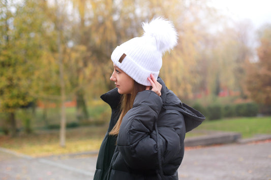 Zimná pletená čiapka Lunanay 3599, krémovo biela s brmbolcom