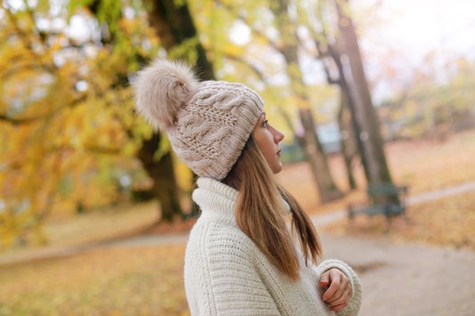 Zimná pletená čiapka Lunanay 3599, béžová s brmbolcom