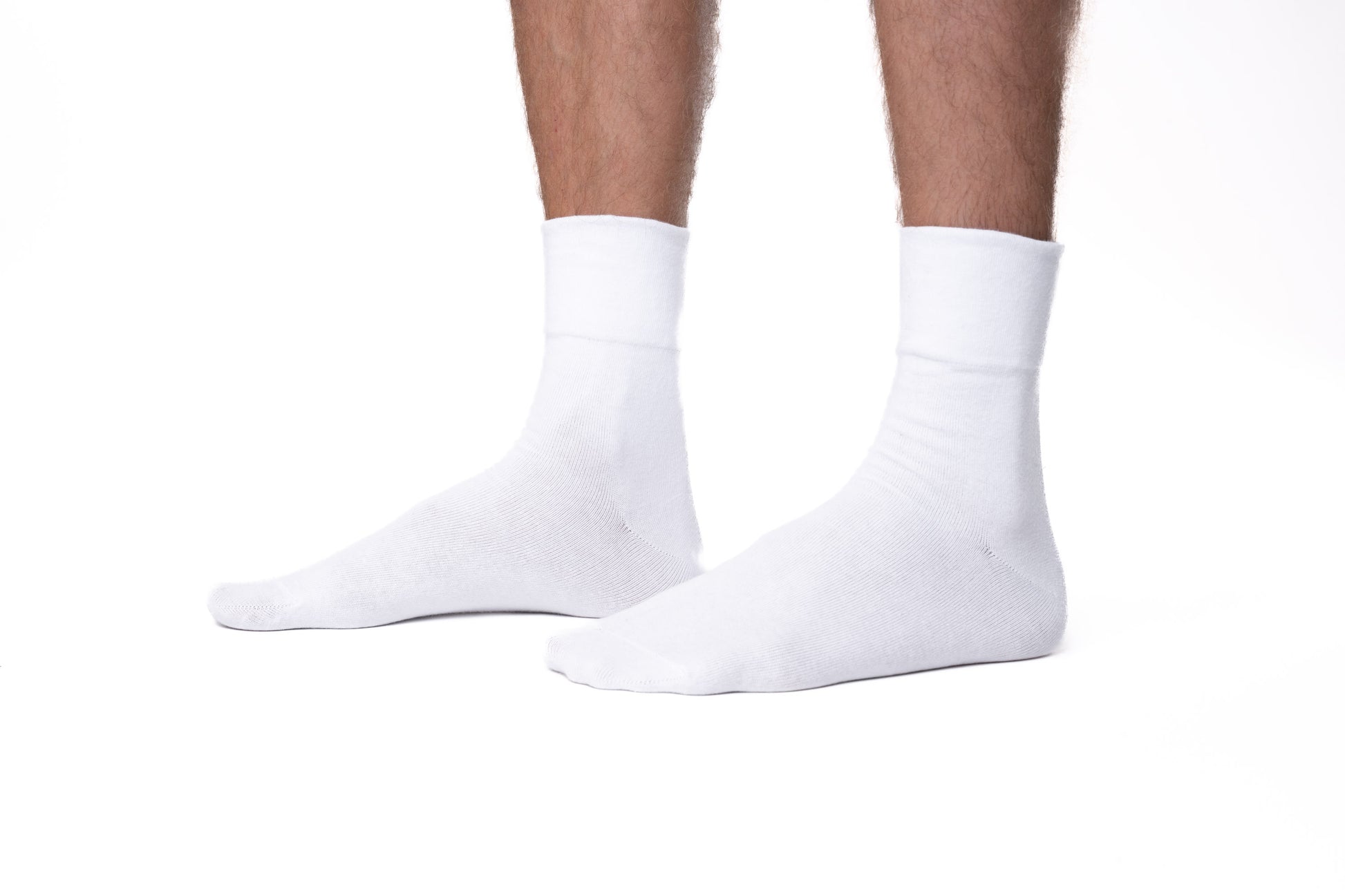 ✔ Ponožky bez gumy sú vyrobené tak, aby rovnomerne rozložili látku okolo nohy a držali ponožku na mieste, pričom poskytujú priliehavý strih, ktorý zabraňuje odieraniu voľnej látky o pokožku