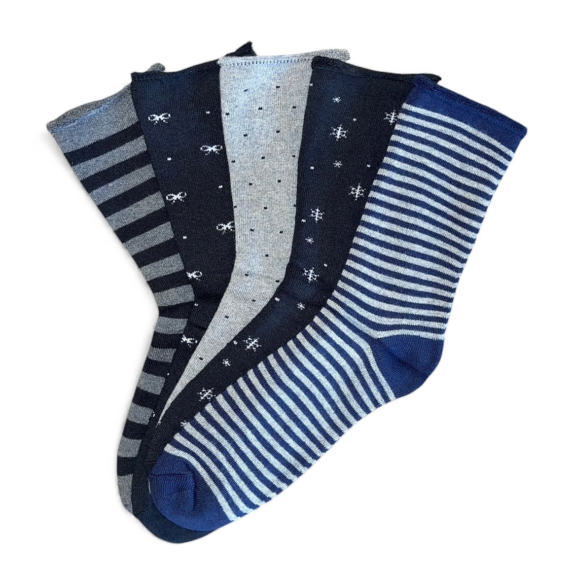 5 párov hrubých termo dámskych ponožiek bez gumičky, tmavé, rôzne vzory 5821