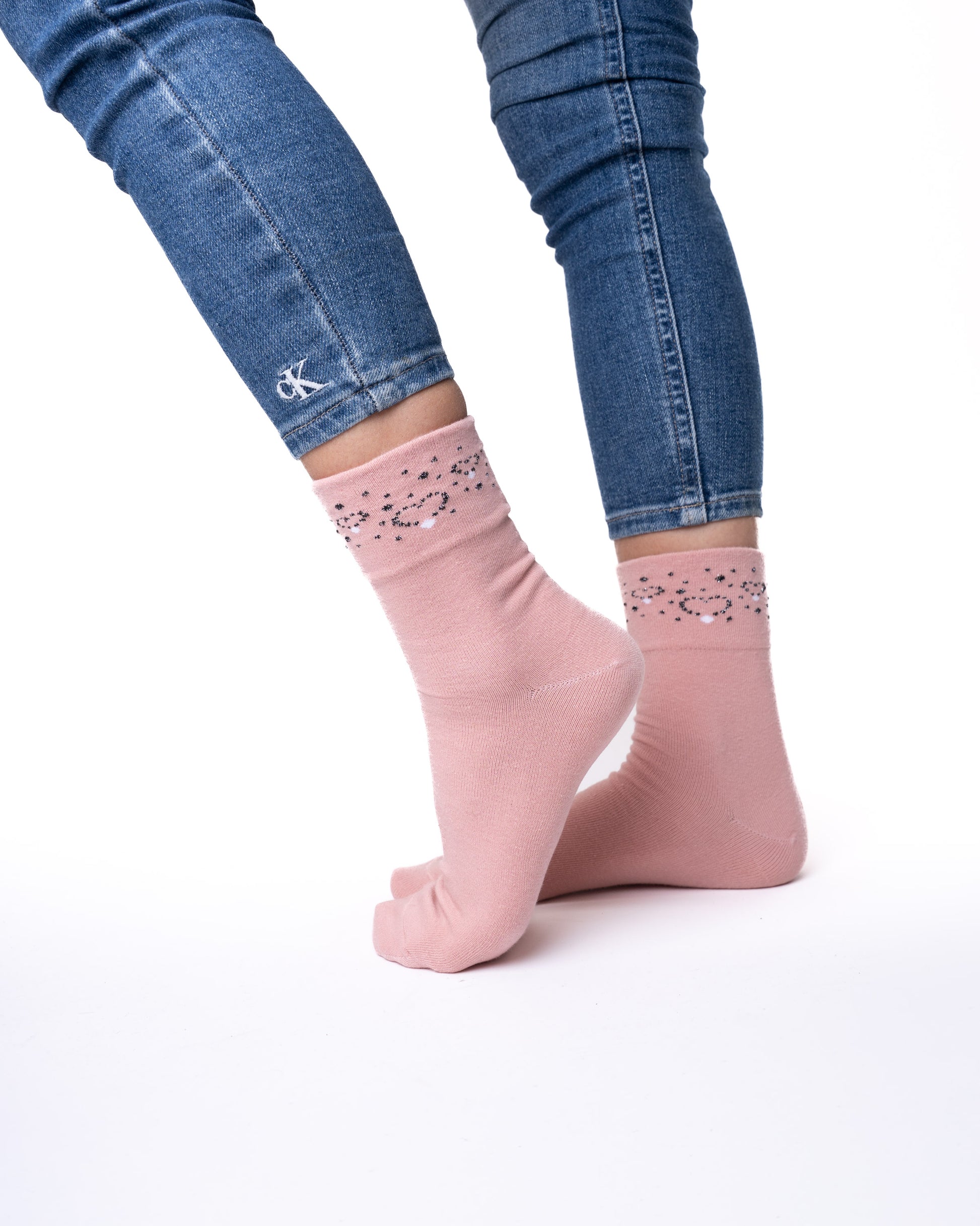 ✔ 6 párov dámskych ponožiek v rôznych farbách s mini lurexovými srdiečkami na okraji