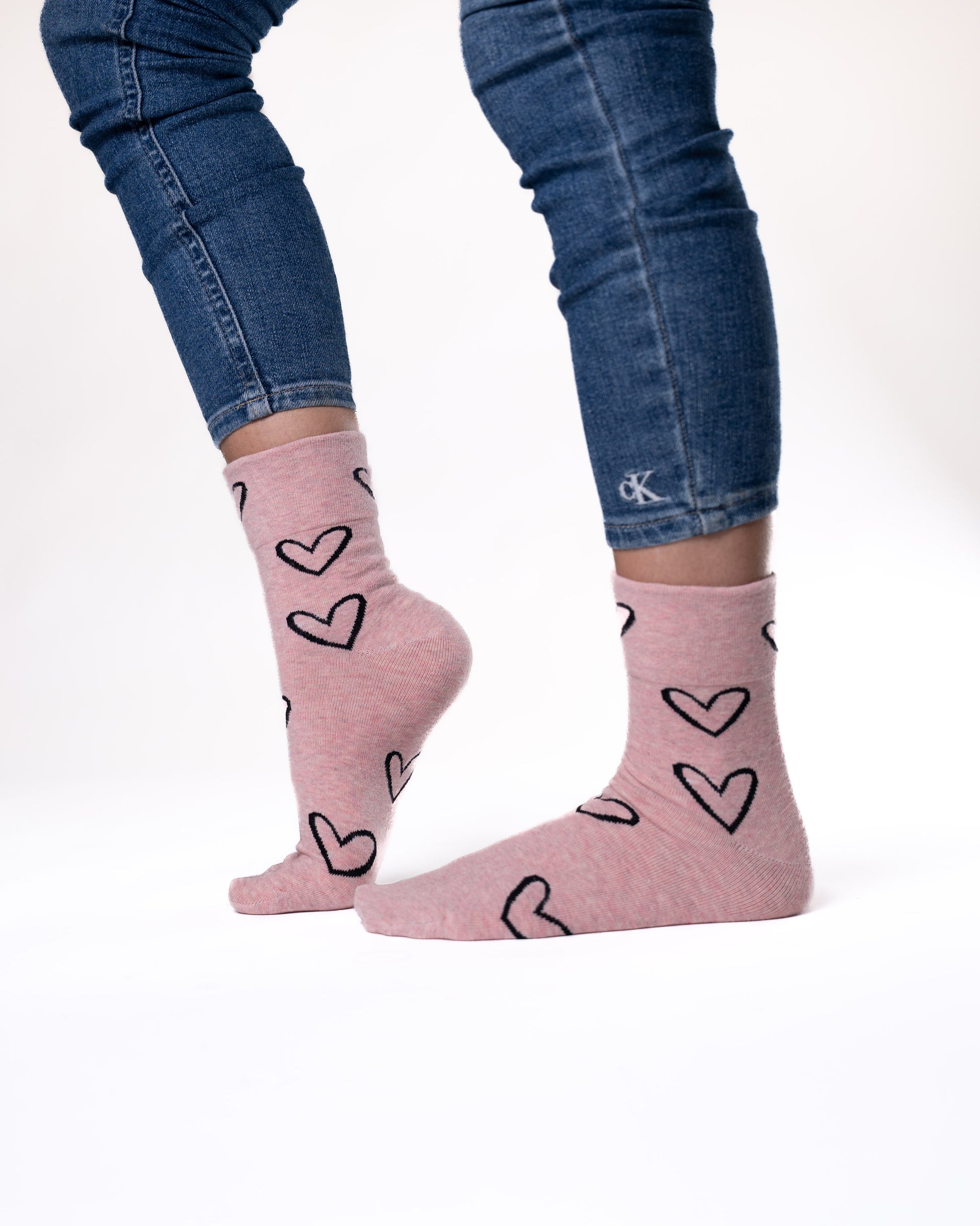 6 párov dámskych ponožiek bez gumičky, veľké srdcia 5929