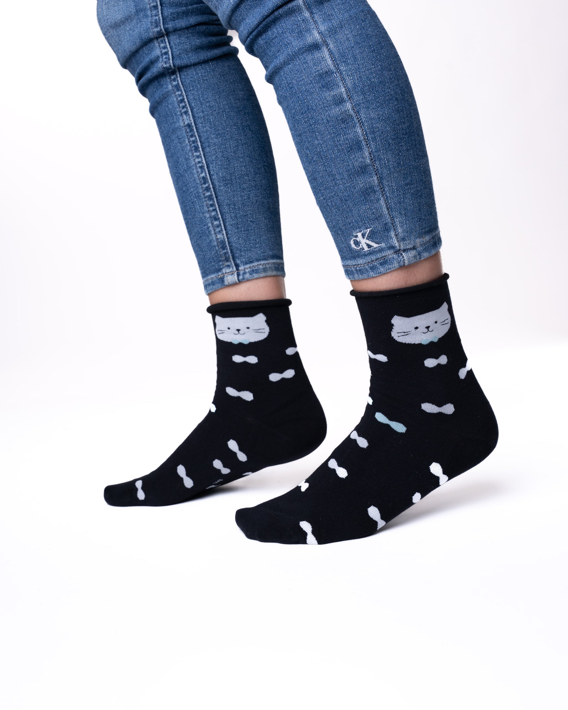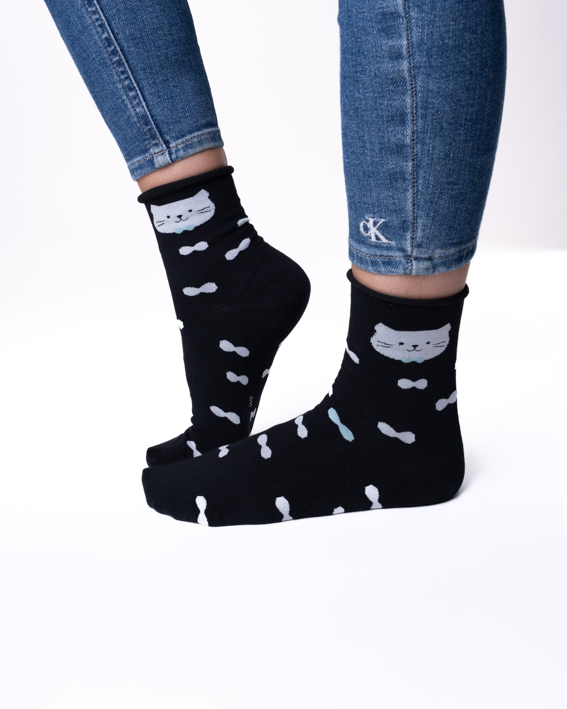 6 párov dámskych antibakteriálnych ponožiek bez gumy a bez švov, mačka a šteniatko 5852