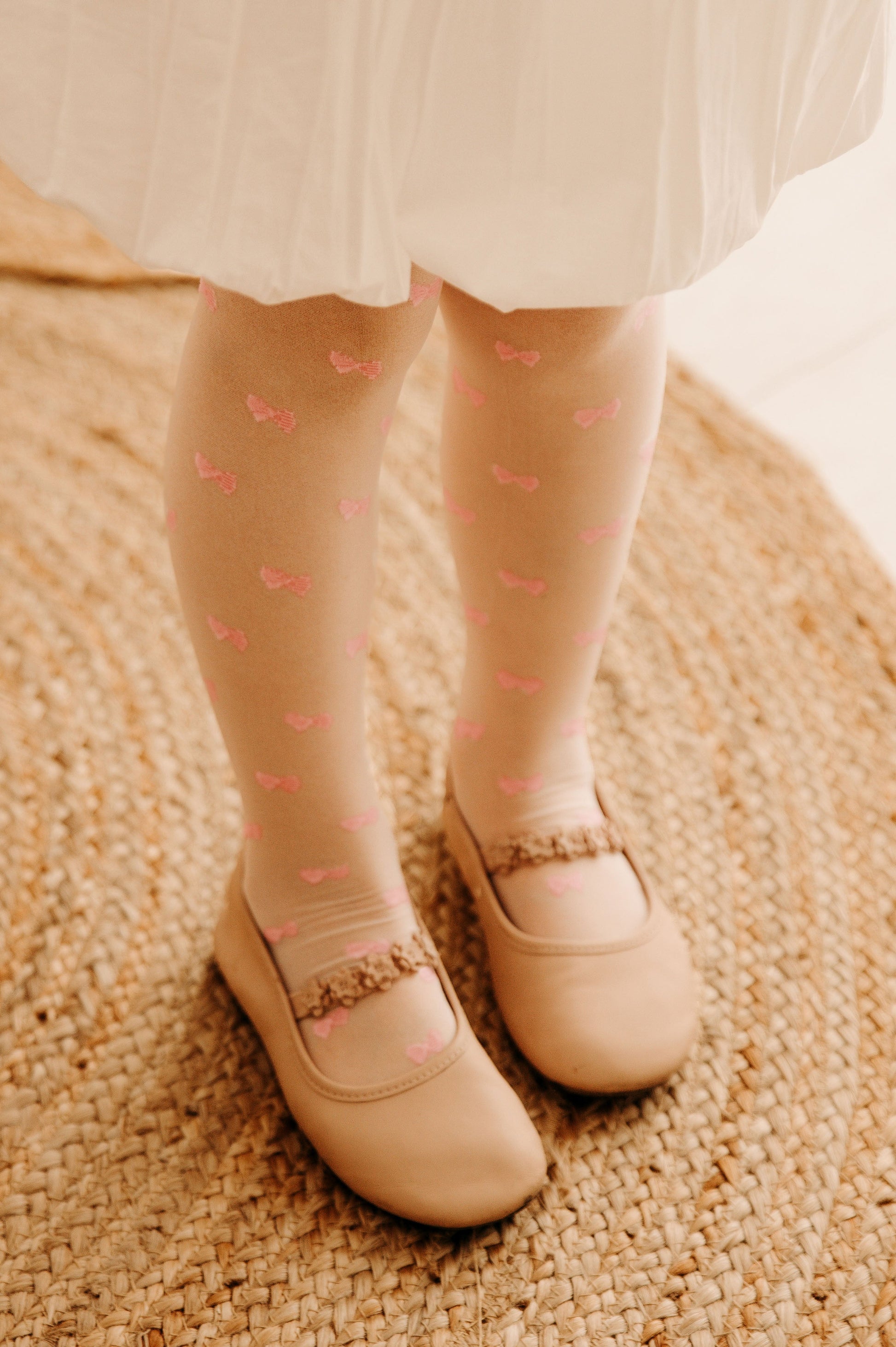 ✓ Detské pančucháče a sladká symfónia mašličiek! Preskúmajte dievčenský svet elegancie a šarmu s bielymi pančuchovými nohavicami s jemným vzorom mašličiek v bielej farbe s ružovými mašličkami