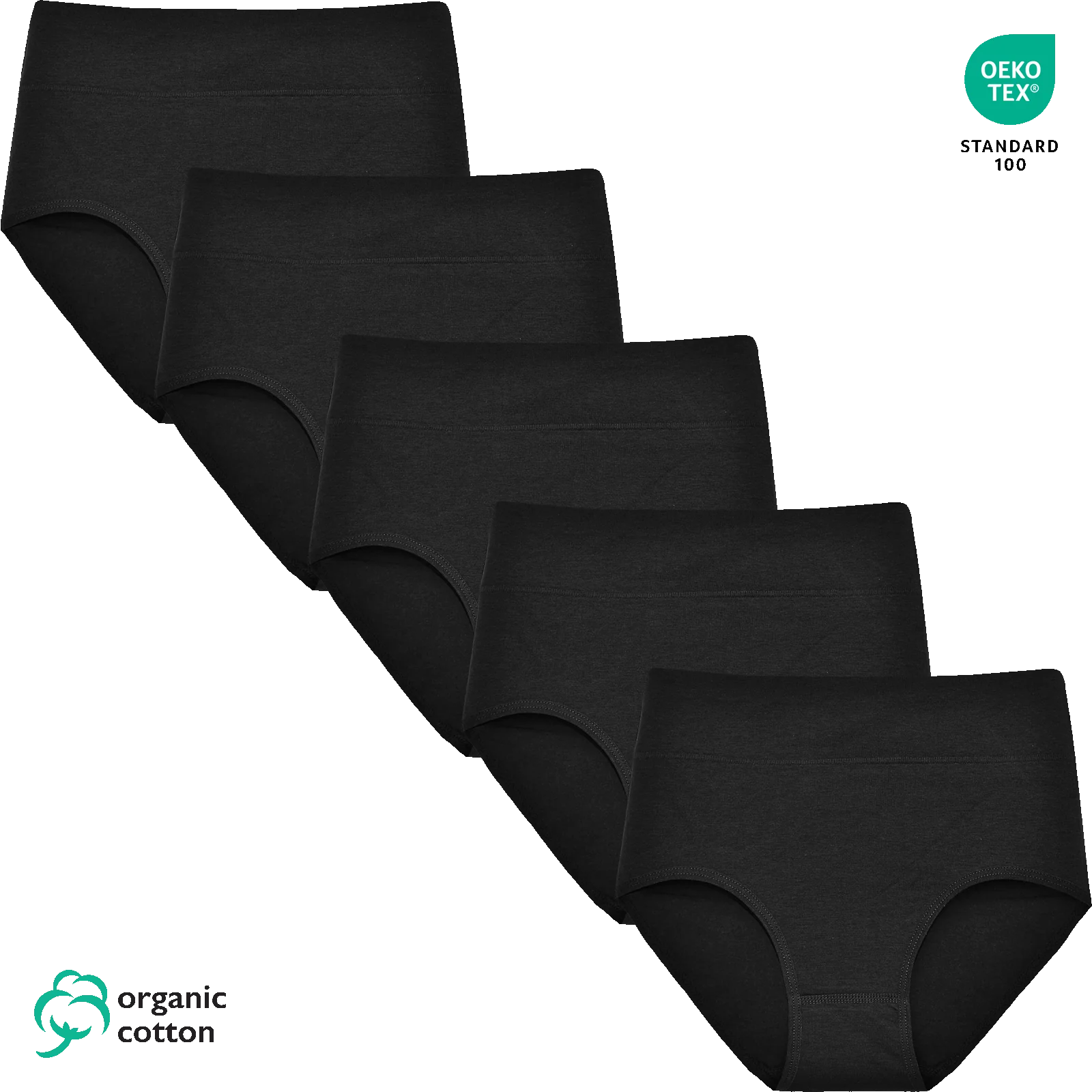 ✓ bombažne spodnje hlačke z visokim pasom za oporo okoli trebuha v črni barvi